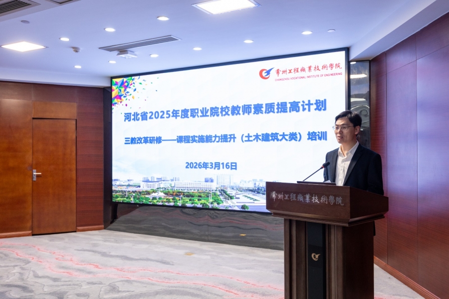 3月16日,由河北省教育厅主办、我校承办的河北省2025年度职业院校教师素质提高计划“三教改革研修——课程实施能力提升(土木建筑大类)”培训班开班仪式在第一会议室举行。来自河北省36所兄弟院校和职教中心的52名专业带头人、骨干教师齐聚常州,开启为期14天的专题研修。学校党委副书记黄宝玲、科研处处长魏建军、建筑工程学院院长刘文斌、继教院院长李旭海出席仪式。开班仪式由李旭海主持。