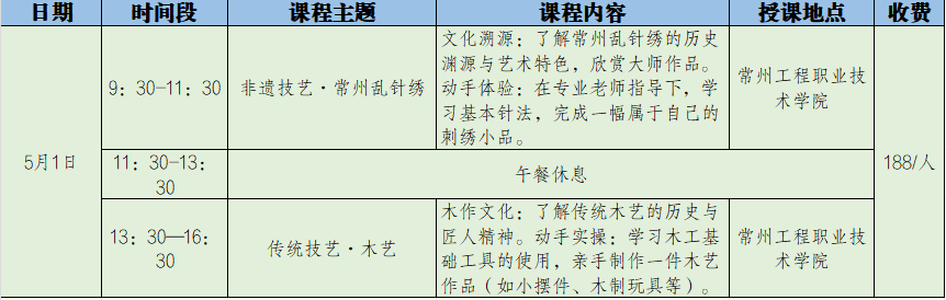 为弘扬中华优秀传统文化,丰富五一假期生活,常州工程职业技术学院继续教育学院将于5月1日举办“非遗技艺·匠心传承”主题研学活动。现将有关事项通知如下: